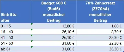 Das gilt sowohl für den eigenen Vertrag des/der Arbeitnehmenden sowie für ggf. bereits bestehende Verträge mitversicherter Familienangehörige. Der Beitrag wird pro Person zum Alter bei Austritt neu kalkuliert; Beitragsrabatte aus dem Gruppenvertrag des Arbeitgebers entfallen.
